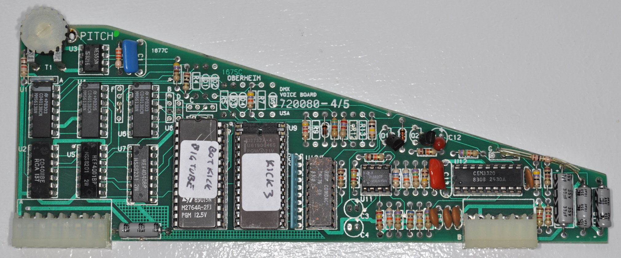 The 1675 voice card uses a low pass CEM3320 voltage controlled filter (VCF) to smooth the digital output. (This is the same filter chip used in the Oberheim OB-Xa and OB-8 synthesizers). A few 1678A voice cards were manufactured, using a slightly different CEM3350 filter instead of the CEM3320. Otherwise, the 1678A is pretty much identical to the 1675C, and this document should apply to either, as far as configuration goes.