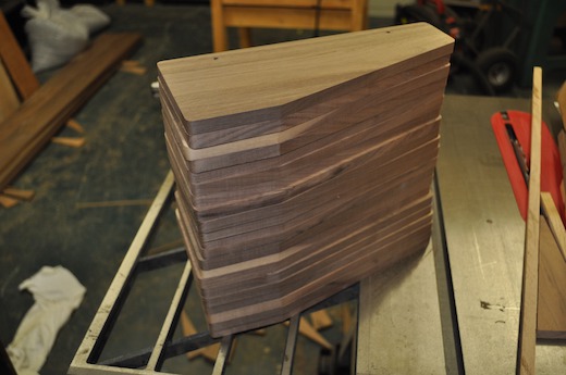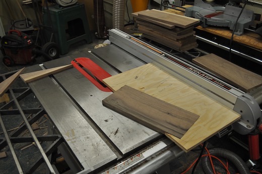 I start with 3/4 inch walnut stock from the lumberyard, cutting it into manageable 4 foot