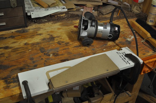 After cutting the material to approximate rectangular size on the table saw, I use a jig to