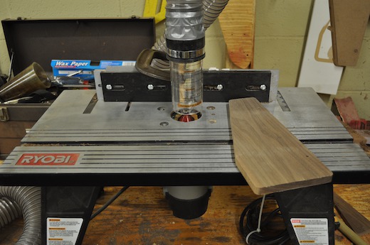 After sanding, the edges are chamfered at the router table, using a 45 degree chamfering